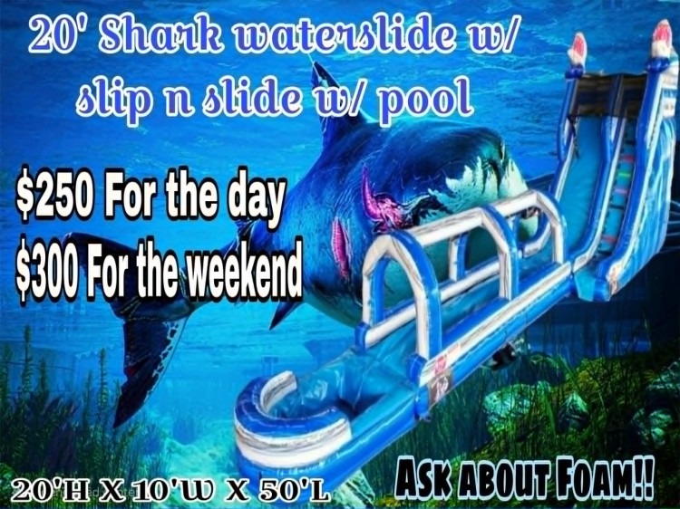 Dive into adventure with our 20FT Shark Waterslide with Slip ‘N Slide and Pool! This thrilling inflatable features a towering 20-foot shark-themed slide, an exciting slip ‘n slide, and a splash pool at the bottom for endless water-filled fun. Perfect for backyard parties, school events, or summer gatherings, its vibrant design and action-packed layout make it a hit with kids, teens and adults. Built with durable, high-quality materials, it ensures safe, wet fun and hours of unforgettable entertainment.